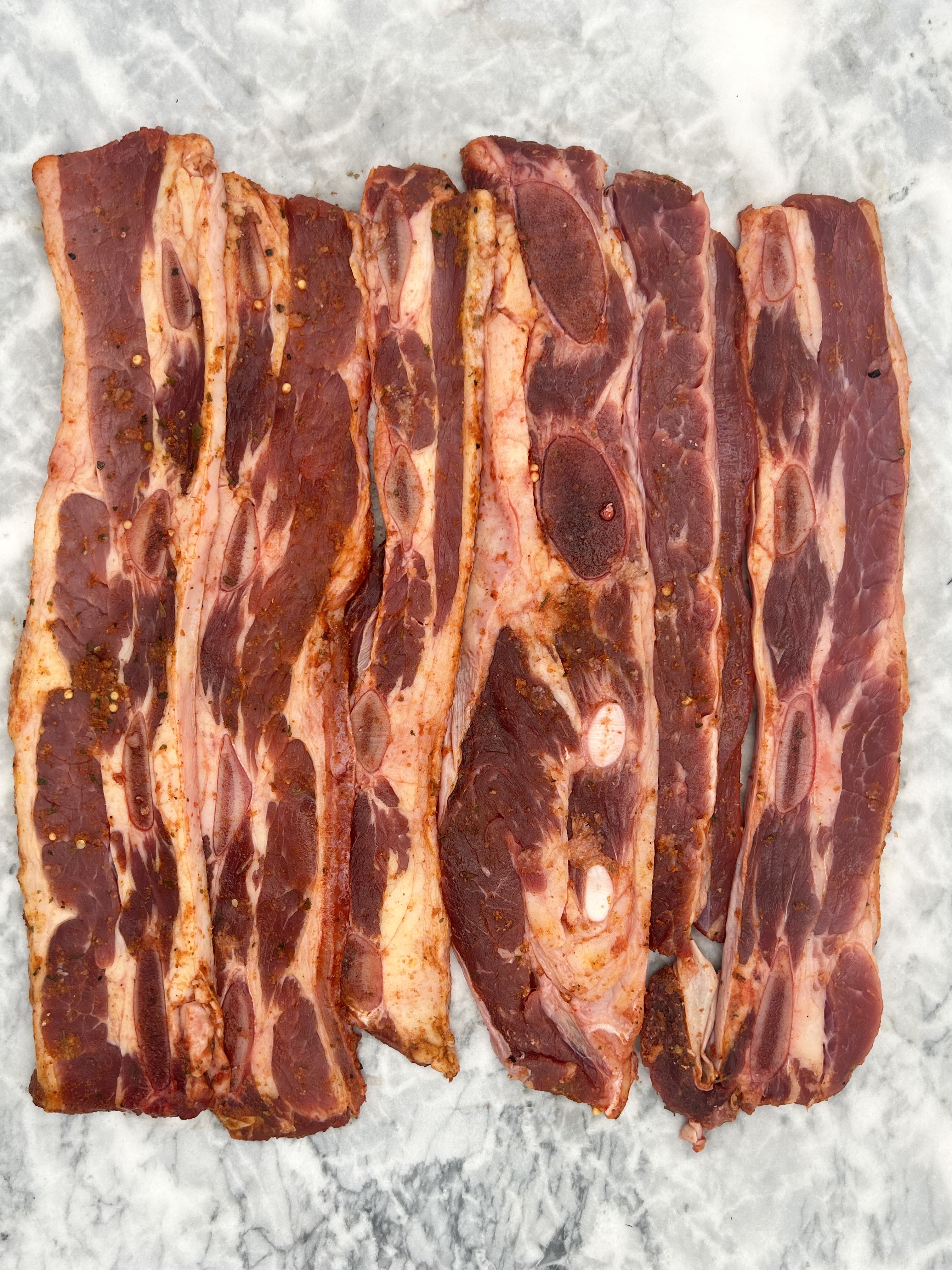 2 packs of Frozen Free Range Beef Rashers Spiced, Avg 500g per pack