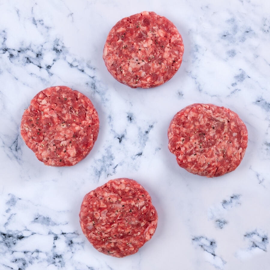 4 packs of 4 Grass Fed Beef Burgers, Avg 640g per pack