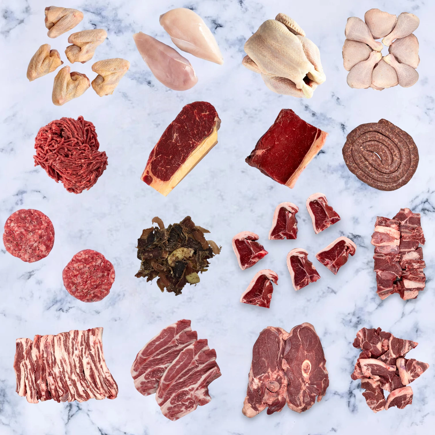 Elgin Free Range Chicken & Langside Grass Fed, Free Range Beef & Lamb.