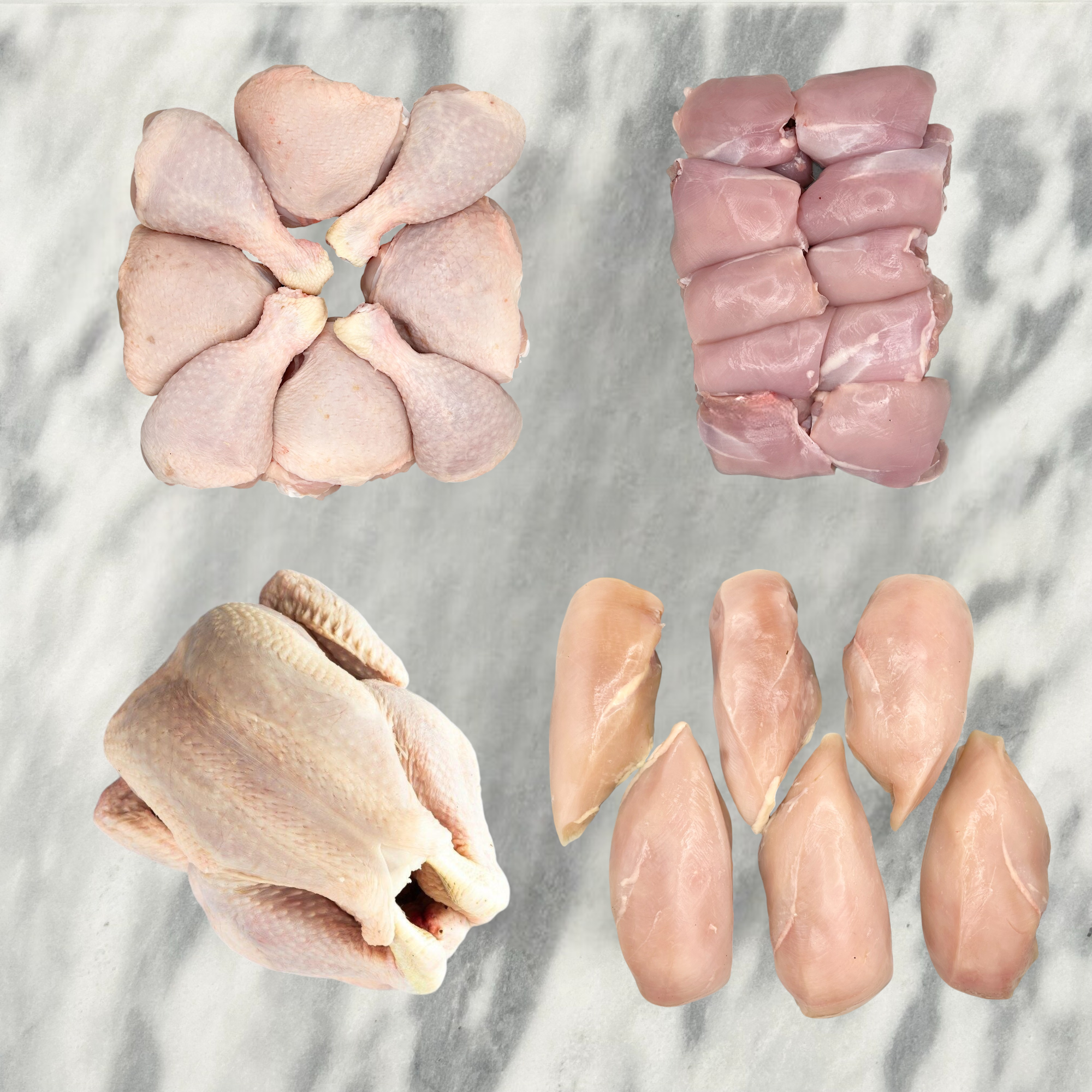 - x1 pack of 4 Chicken Thighs and 4 Drumsticks, Avg 950g per pack