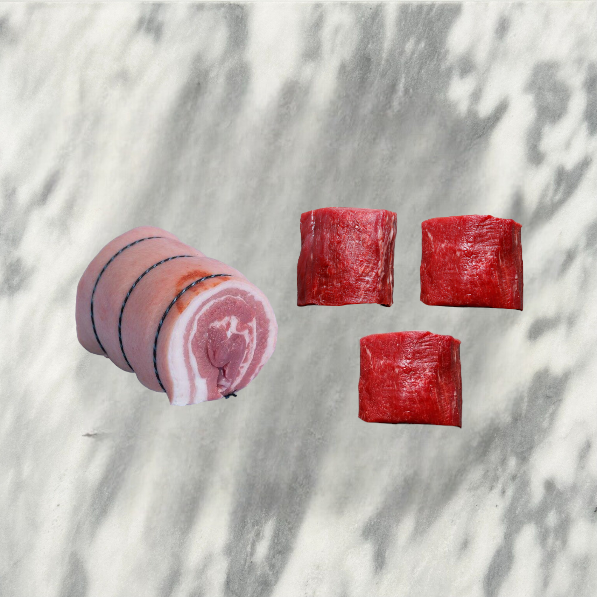 1 Pork Belly Roll & 3 Beef Fillets quantity